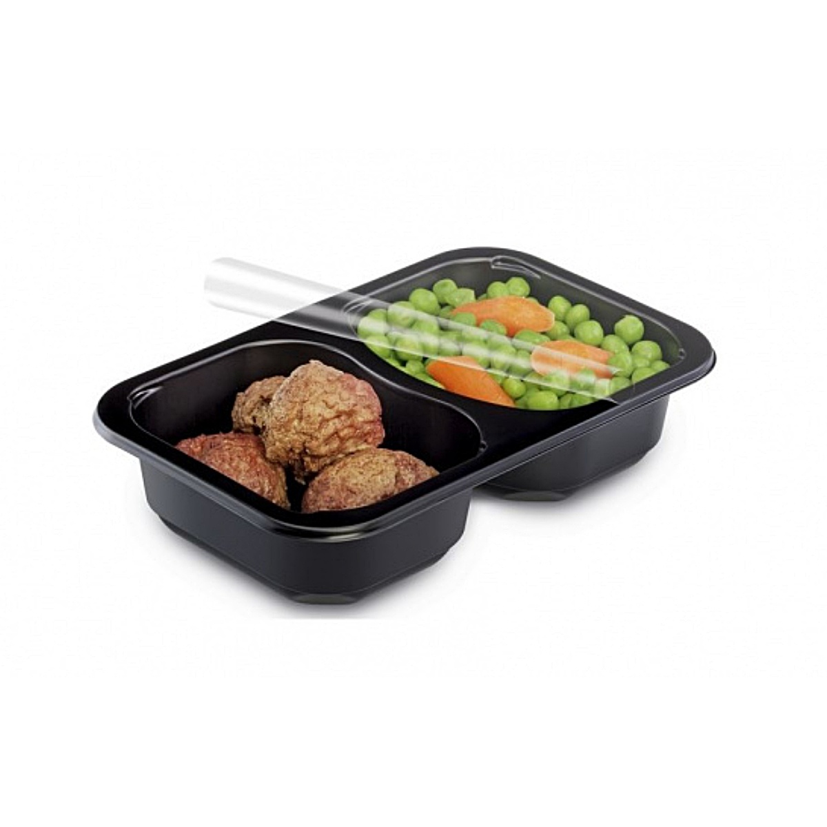 • Czarny pojemnik do zgrzewu 178/113/50 600ml 2-DZIELNY